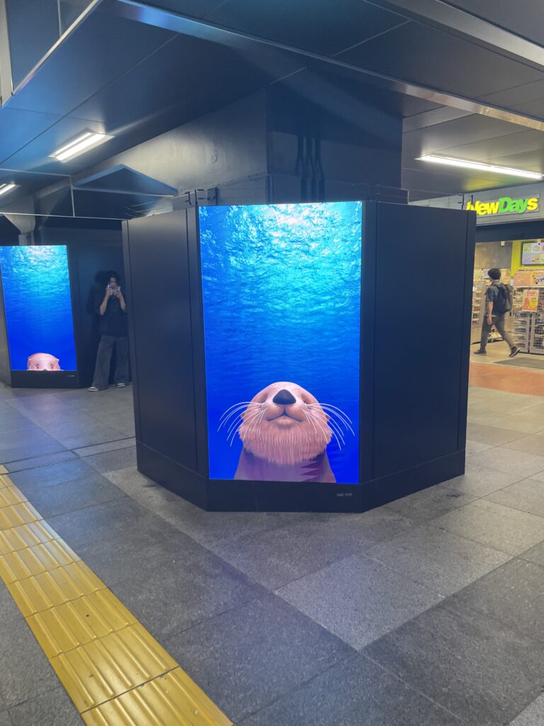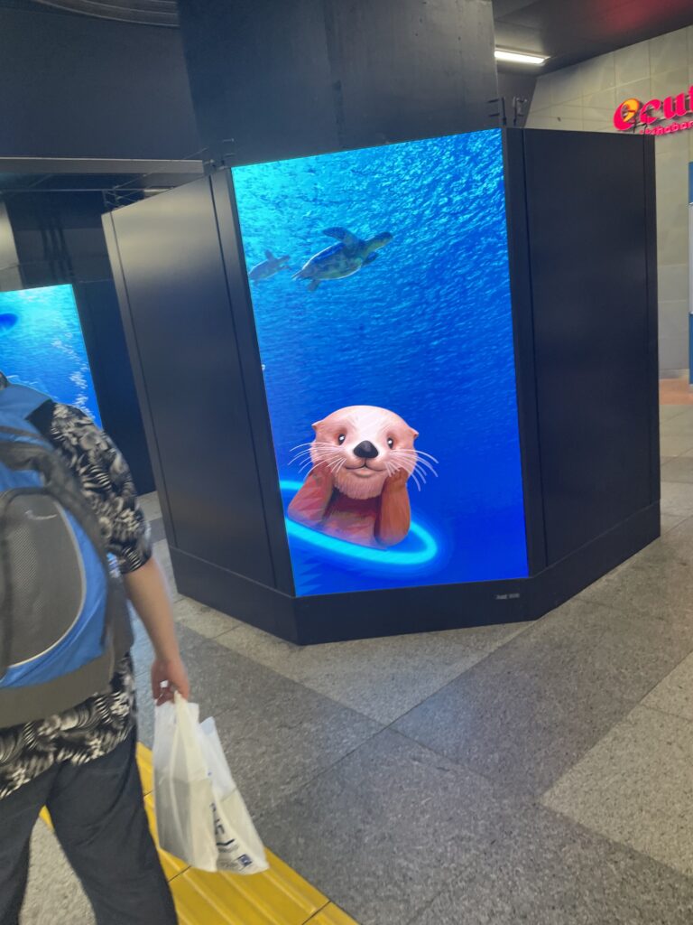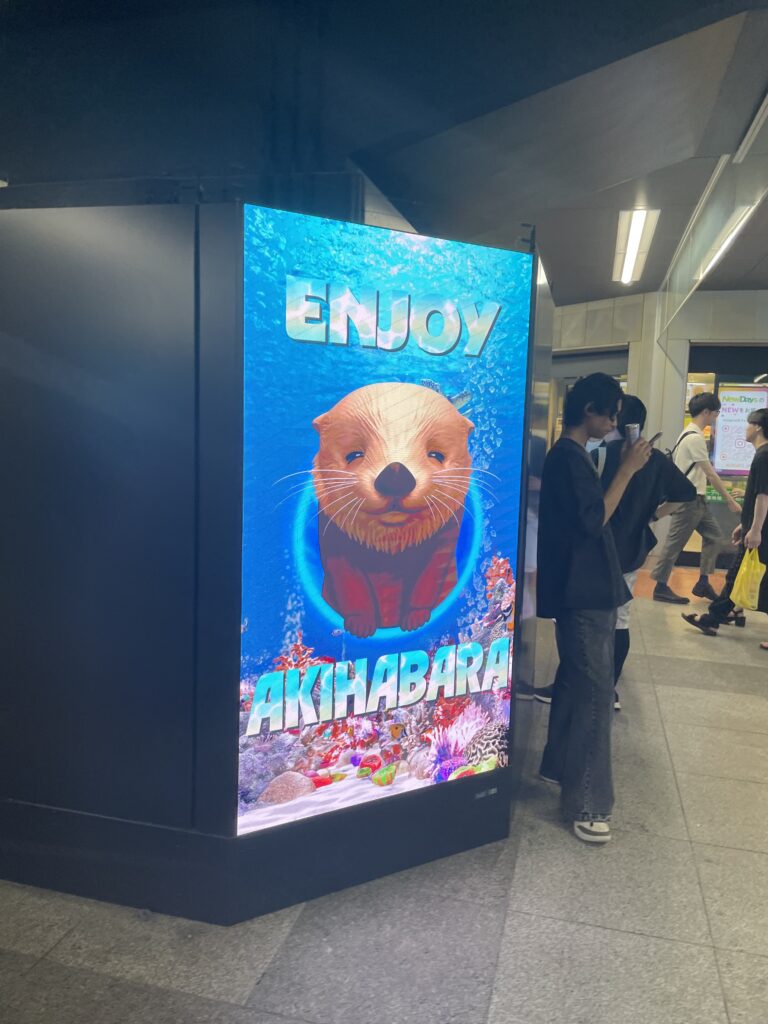 秋葉原駅の改札付近にはカワウソくんがお出迎えしてくれるデジタルサイネージがあってついついパシャパシャしちゃいました!